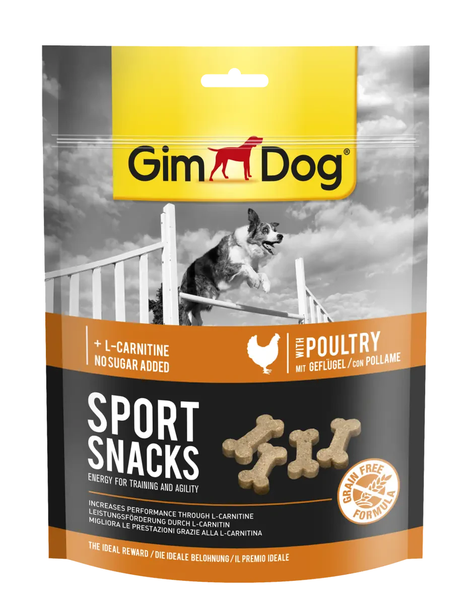 Kümes Hayvanı içeren GimDog Sport Snacks Ödül Tableti, tahıl içermeyen bir formüle göre hazırlanır, çok sayıda lezzetli kümes hayvanı ve performans arttırıcı L- Karnitin içerir. Egzersizle birlikte beslendiğinde, bu özel bileşen, dokulardaki yağ birikimini azaltır ve metabolizmayı hızlandırır.