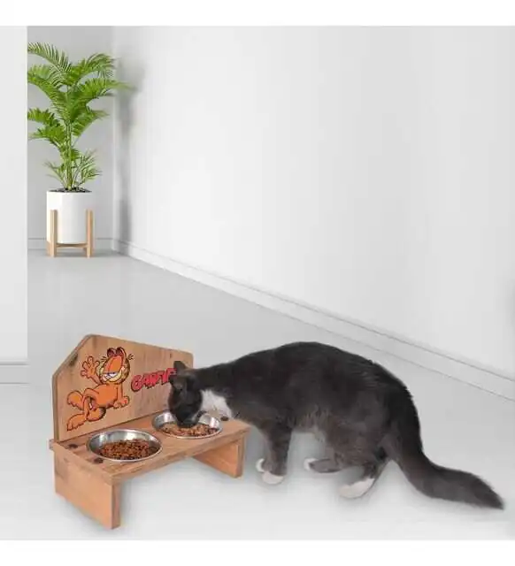 Garfield Ahşap Mama Standı İkili
