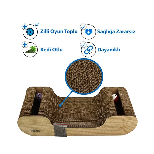 Herniks Doğal Kedi Otlu ve Zilli Toplu Kedi Tırmalama Kartonu 44 Cm HR2022