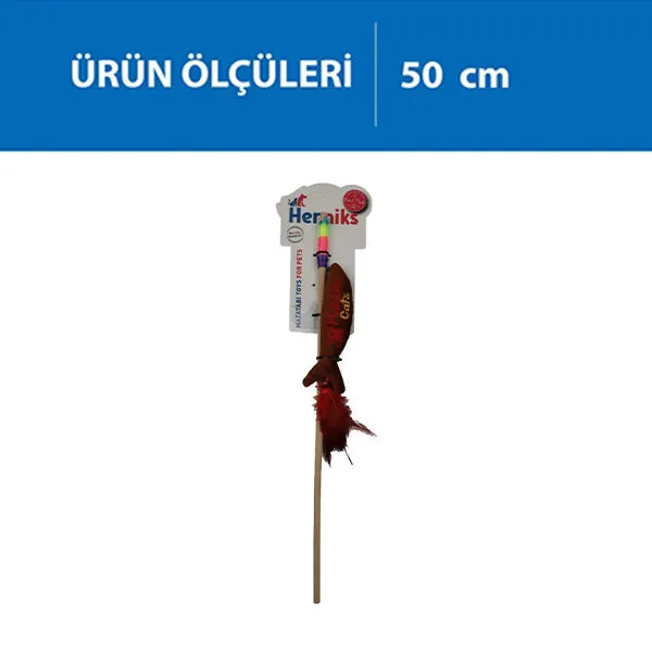 Herniks Matatabili Sesli Tüylü Ahşap Saplı Kedi Oltası Jr. Fish 50cm - Kahverengi