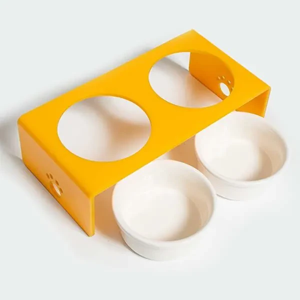 Herniks Pati Desenli Şeffaf Pleksi Ve Seramik İkili Mama Kabı 30x15 Cm - Sarı