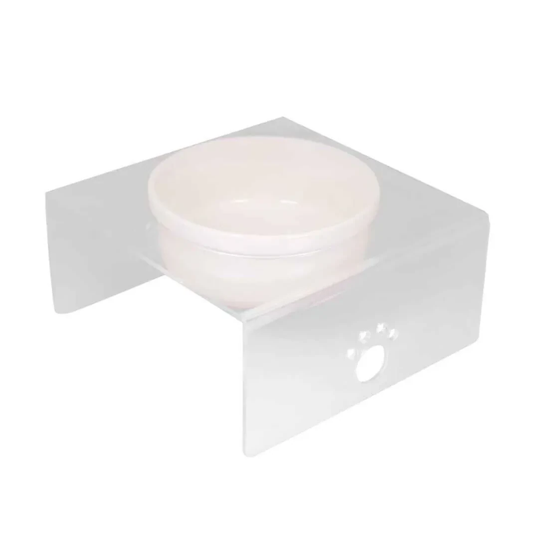 Herniks Pati Desenli Şeffaf Pleksi Ve Seramik Tekli Mama Kabı 17x15 Cm - Şeffaf