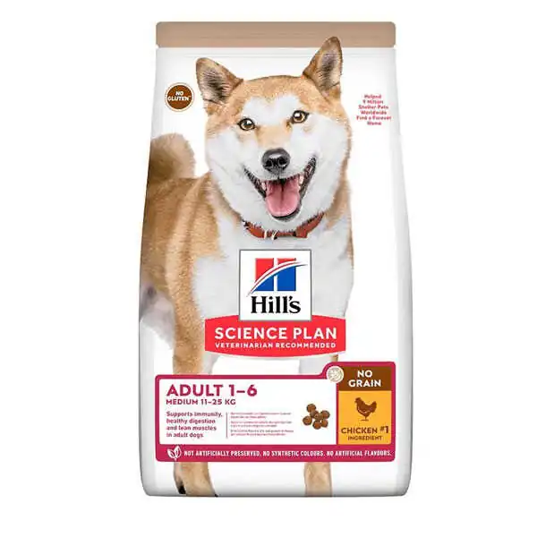 Hill's Science Plan Yetişkin 1-6 Tavuklu Tahılsız Besiyer, hassas mideleri olan köpekler için uygun bir tam mamadır. Tahıl ve glüten içermez, bu da onu alerjileri veya intoleransları olan bir köpek için mükemmel bir seçim haline getirir.