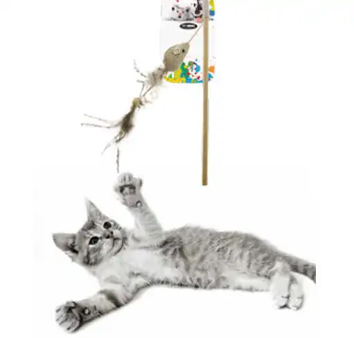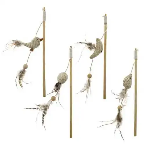 Imac Doğal Kedi Oltası 26 CMKediler için, eğlenceli vakit geçirebilecekleri, doğal keten kumaştan yapılmış, 35 cm uzunluğunda ahşap sopası, 55 cm uzunluğunda ipi bulunan, farklı şekillerde, catnipli olta kedi oyuncağıdır.