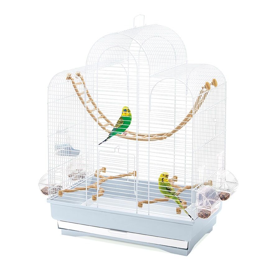 Fiona kafesi, tel örgü ve plastik taban renginin şık bir kombinasyonunu sunan kanaryalar, muhabbet kuşları ve egzotik kuşlar için güzel ve zarif bir yuvadır. Yuvarlak çatı tasarımı, tüylü dostlarınız için büyük konfor, geniş alan ve hareket özgürlüğü sağlar. Fiona, gerekli tüm aksesuarlarla donatılmıştır: dört şeffaf Mia yemlik, bir Tweety 100 suluk, iki dal şeklinde tünek ve bir Tibet merdiven salıncağı, kuşlarınızın rahatça oynaması, yemesi ve içmesi için ihtiyaç duyduğu her şeyi sağlar. Kafes, rutin bakım sırasında kolay erişim için büyük bir ön kapıya ve daha küçük bir yan kapıya sahiptir. Temizlik hızlı ve basittir: günlük atıkları atmak için çekmeceyi çıkarmanız yeterlidir. Daha fazla rahatlık için, Fiona'yı döner tekerlekleri sayesinde kafesi evinizin herhangi bir köşesine kolayca taşımanıza olanak tanıyan Portagabbie 226 standıyla eşleştirin.