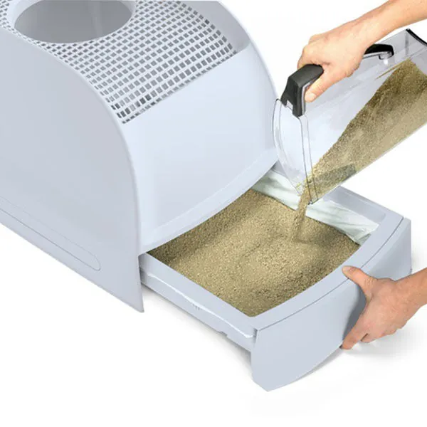 Tuvaletin çekmecesini açarak içerisine yeterli miktarda kedi kumu koyun. Kediniz kullandıktan sonra, patilerindeki fazla kum elekli yüzeyden hazneye dökülür. Günlük olarak topaklanan kumları kürekle temizleyin. Hijyen sağlamak adına kum tamamen değiştirilmeli ve tuvalet düzenli olarak dezenfekte edilmelidir. Koku kontrolü için filtrenin belirli aralıklarla değiştirilmesi tavsiye edilir.