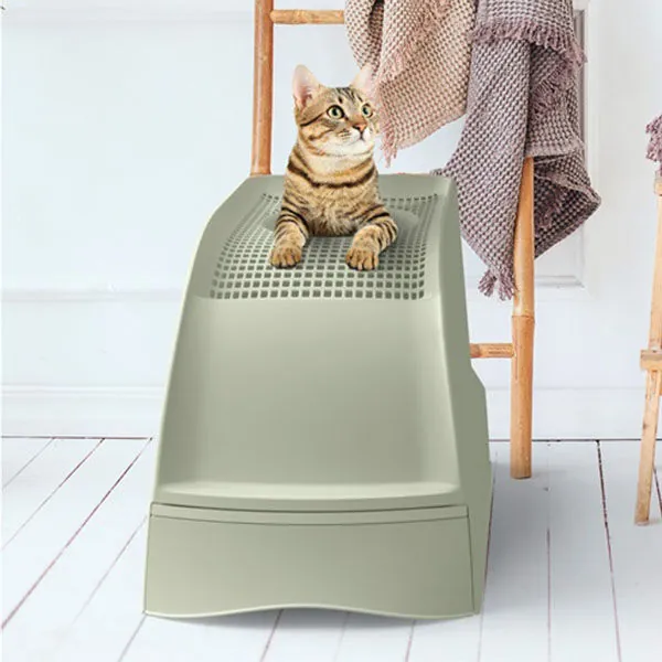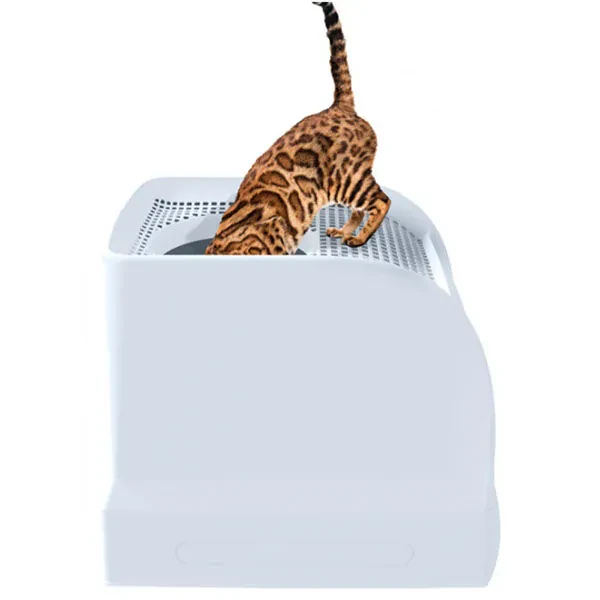 Kediniz tuvaletini kullandıktan sonra, üst girişten çıkarken patilerindeki fazla kum, üstteki elekli yüzey sayesinde hazneye düşer. Böylece çevrede kum birikimi oluşmaz, eviniz daha temiz kalır. Bu tasarım, özellikle hassas hijyen isteyen kullanıcılar için idealdir.
