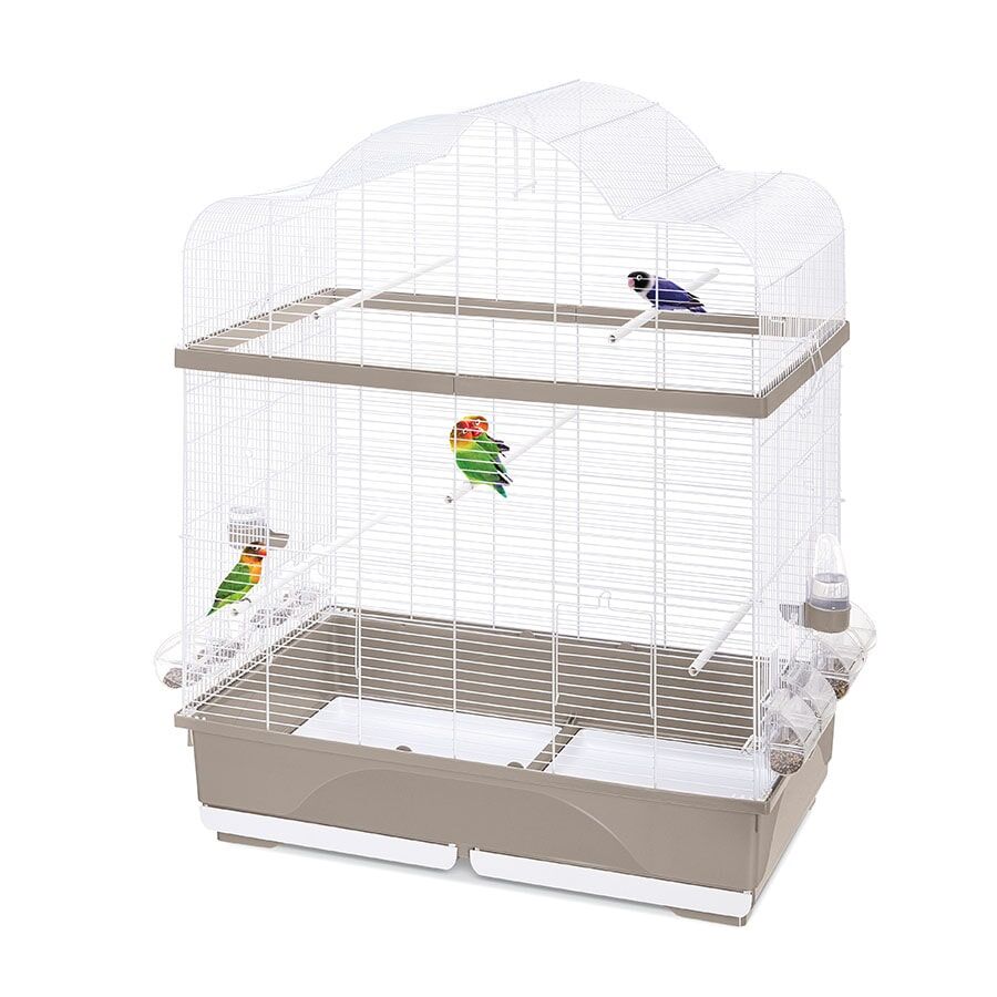 Ginevra kafesi, kanaryalar, muhabbet kuşları ve egzotik kuşlar için ideal olan büyük dikdörtgen bir tabana sahiptir. Yuvarlak çatı tasarımı, tüylü dostlarınız için bol konfor, alan ve hareket özgürlüğü sağlar. Alttaki iki çıkarılabilir çekmece, atık ve dışkıları toplamak için olmazsa olmazdır ve temizlik işlemlerini daha hızlı ve kolay hale getirir. Ginevra kafesi, kuşlarınız için gerekli tüm aksesuarlarla donatılmıştır: 8 Mia yemlik, 2 Tweety suluk ve rahat tünekler. Ayrıca, isteğe bağlı Portagabbie standı kafesi kolayca hareket ettirmeyi kolaylaştırır.