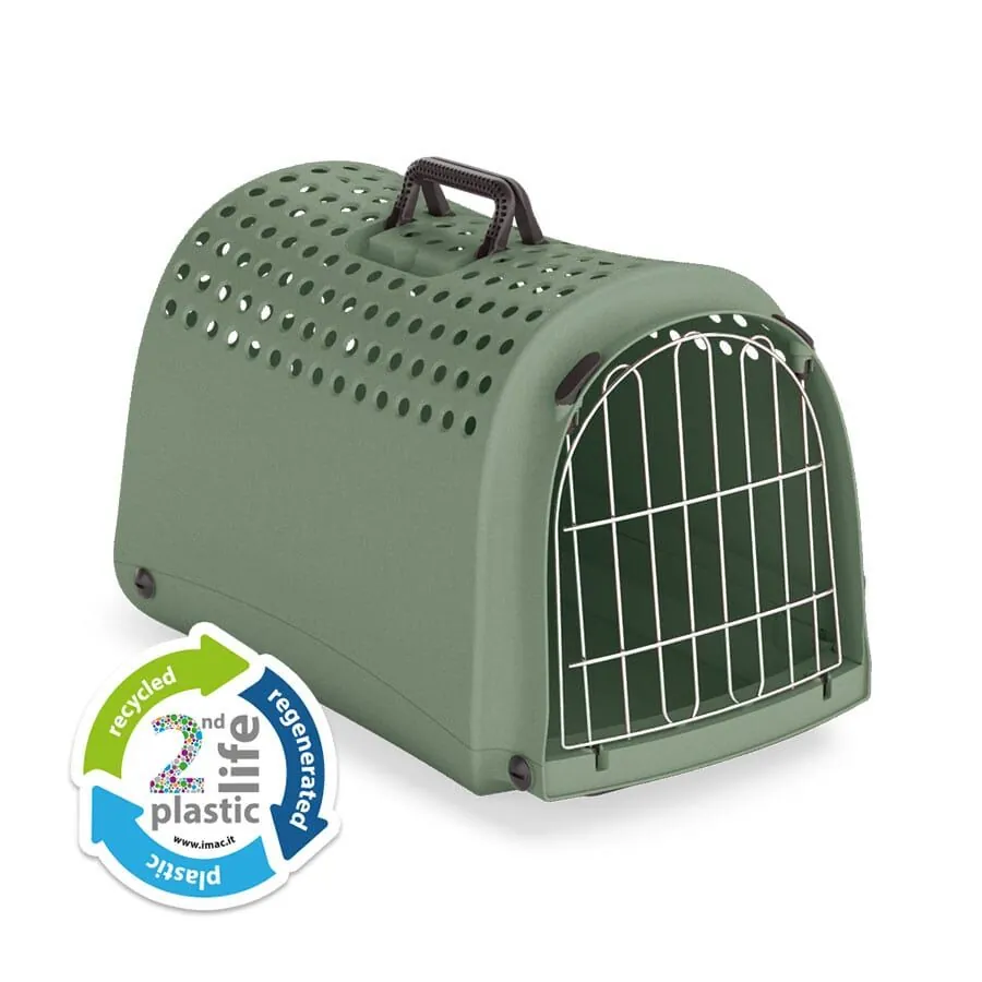 IMAC Linus 2nd Life Yeşil Evcil Hayvan Taşıma Çantası, küçük ırk köpekler ve kediler için tasarlanmış, çevre dostu bir taşıma çözümüdür. 52,5x32x34,5 cm ölçülerindeki bu model, geri dönüştürülmüş plastikten üretilmiştir, böylece hem dayanıklı hem de çevreye duyarlıdır. Üstten açılabilir tasarımı sayesinde evcil hayvanınıza kolayca ulaşabilir, ona mama verebilir veya sadece sevebilirsiniz. Ön metal kapak ve yan havalandırma delikleri, mükemmel hava akışı sağlayarak yolculuk sırasında konforu artırır. Taşıma kulbu, çantayı rahatça taşımanıza olanak tanır. Farklı renk seçenekleriyle stilinize ve evcil hayvanınızın kişiliğine uyum sağlar. IMAC Linus 2nd Life, hem fonksiyonel hem de estetik bir taşıma çantası arayanlar için ideal bir tercihtir.