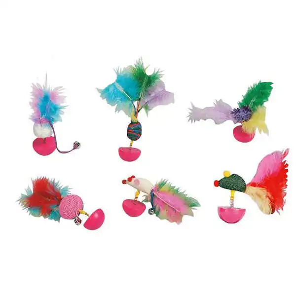 Renkli tüylü, hacıyatmaz kedi oyuncağı. 12 cm yükseklik. 3,5 cm çap.