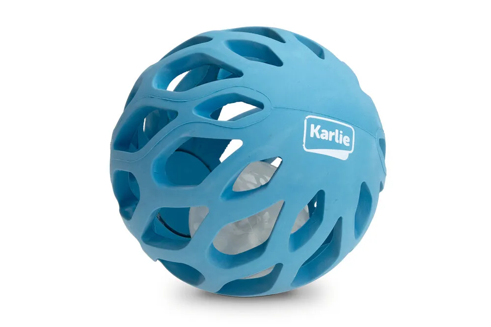 KARLIE KAFES OYUN TOPU MAVİ 11,5.Dayanıklı ve aynı zamanda esnek kauçuktan yapılmış köpek oyuncakları. Fırlatma oyunları için idealdir.Kolayca fırlatılabilir ve köpek tarafından rahatlıkla alınabilir. Atıştırmalıklarla doldurulabilir aynı zamanda ışıklı olmasından kaynaklı köpeğinizin dikkatini çeker. Köpeğin oynaması ve zihin gelişimi etkinlikleri için harika bir seçenek sunar.