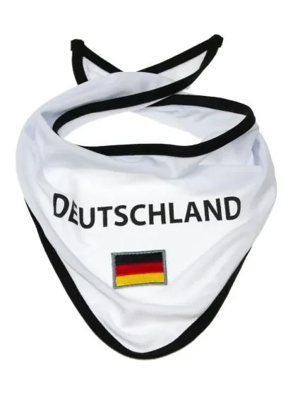 Şık gol kutlaması. Almanya atkısı ile hayvan arkadaşınızla birlikte tezahürat yapmak daha da eğlenceli. Bu bandana Almanya forması ile kombinlenebildiği gibi tek başına da güzel bir hava katıyor. Çok iyi donanımlı taraftarlarla Alman takımı kesinlikle kaybedemez. Almanya baskılı ve siyah-kırmızı-altın yamalı atkı polyesterden yapılmıştır. Siyah kenarlıklı beyaz. Üç boyutta mevcuttur.