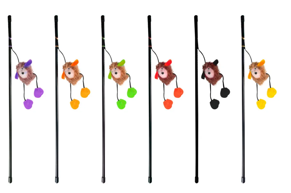 Sesli, kedi otlu, peluş kirpili kedi oltası. 50 cm uzunluk. Çeşitli renklerde.