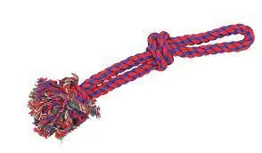 Pamuk ipler ve budaklar popüler köpek oyuncaklarıdır. Getirmek, fırlatmak veya çekmek ve çekiştirmek için olsun, köpek ve ustanın eğlenceli olduğu çeşitli oyun seçenekleri sunarlar. Doğal pamuk liflerinden yapılan oyuncaklar çok sağlamdır. Burada hiçbir şey kırılamayacağı veya parçalanamayacağı için olası yaralanmalar konusunda endişelenmenize gerek yok. Pamuk düğümleri insanlar ve köpekler tarafından kolayca alınabilir. Özel bir artı olarak, dört ayaklı arkadaşların dişlerini ve diş arası boşluklarını bile eğlenceli bir şekilde temizlerler. Bu ekstra büyük halkalı çekme aleti, büyük ve güçlü köpek ırkları için özel olarak tasarlanmıştır. Boyutlar: 40 x 30 cm