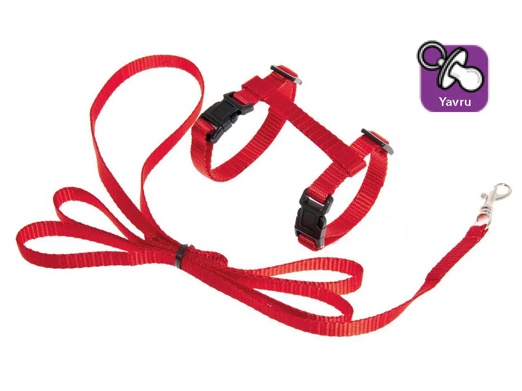 Kediler için eğlenceli desenlere sahip göğüs tasması ve uzatması. Uzunluk 120 cm. Kalınlık: 10 mm. Kırmızı