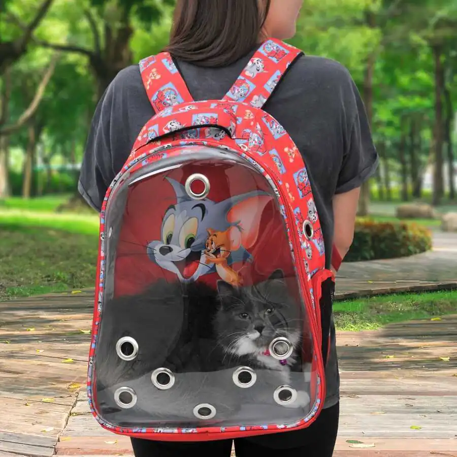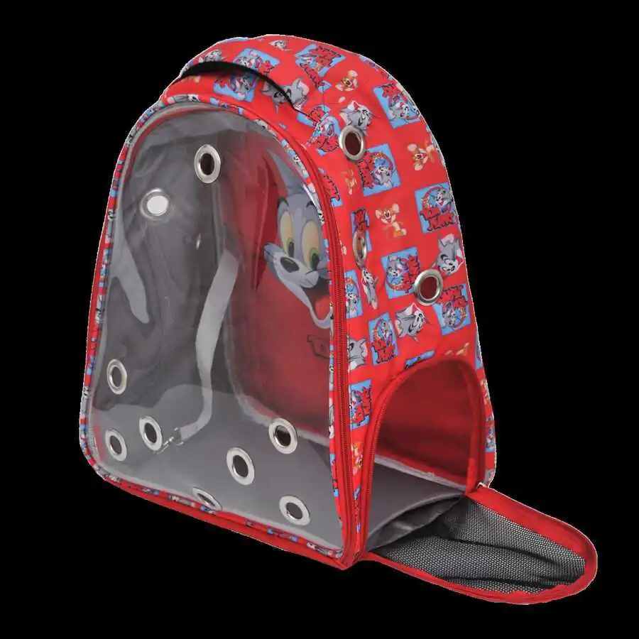 Tom And Jerry Şeffaf Kedi Taşıma Çantası Kırmızı
