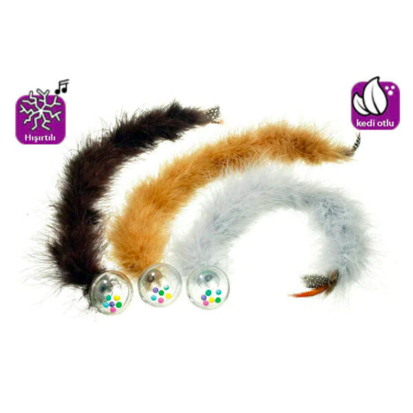 Peluş, tüylü ve kedi otlu plastik top sayesinde kediniz çok eğlenceli vakit geçirecek. 45 cm uzunluk.