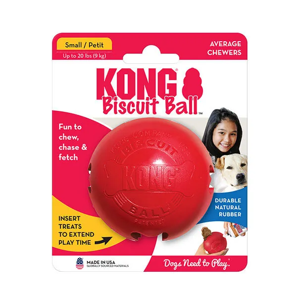 Dayanıklı ve sağlıklı doğal kauçuktan üretilen KONG Biscuit Ball, küçük ırk köpeklerin yoğun çiğneme ihtiyaçlarını karşılamak üzere tasarlanmıştır.
