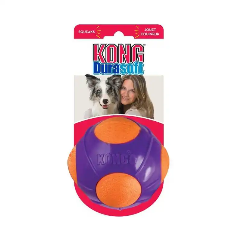 Kong DuraSoft toplar, hem dayanıklılığı hem esnekliği bir araya getiren oyuncak toplardır. Topun farklı yüzeyleri köpeğin oyun güdülerini uzun süre meşgul edecektir. Suda batmaz ve iyi sıçrama özelliğine sahiptir. Çıkardığı sesle oyuna teşvik eder. Bu Large boyu, büyük ırk köpekler için idealdir. Ürün çeşitli renklerdedir.