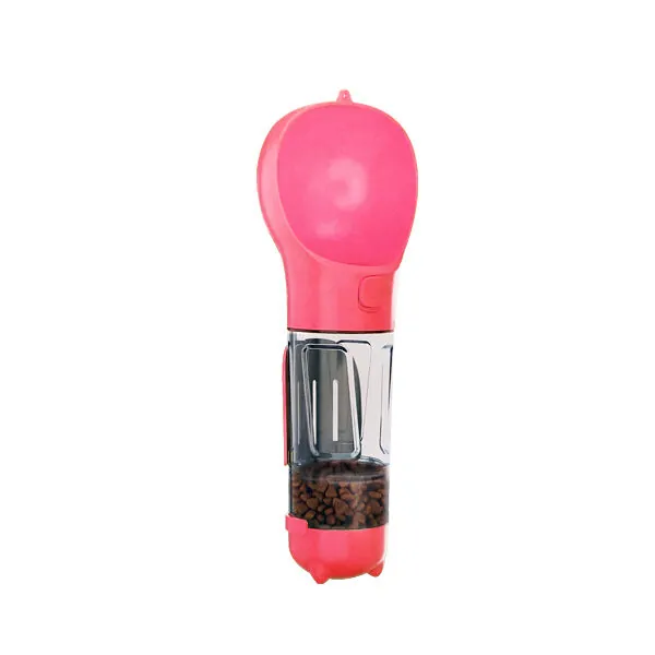 Köpek Seyahat Suluğu Mama Kabı İlaveli – Pembe | Dış Mekânda Pratik ve Hijyenik Çözüm