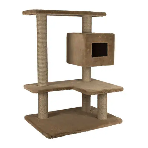Bu iyi yapılmış kedi ağacı, kedinin enerji salması, rahatlaması ve kaşıma ve tırmanma dürtüsünü tatmin etmesi için gidilecek bir yer sağlar.