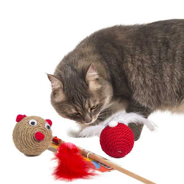 Oltanın ucundaki sesli top ve yumuşak peluş kedinizin seveceği türdendir.