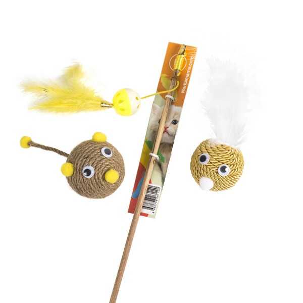 Üç parçadan oluşan bu Kedi Oyuncağı Seti kedinizle beraber eğlenceli vakit geçirmenizi sağlar.