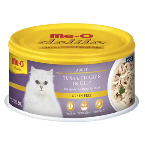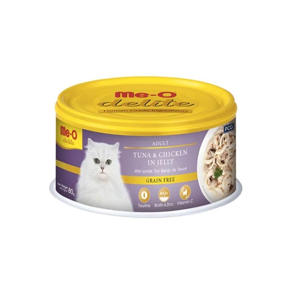 Me-O Jöle İçinde Ton Balıklı ve Tavuklu Tahılsız Kedi Konservesi, inanılmaz lezzeti ile kedinizin dikkatini çekmek ve ödüllendirmek için en iyi yöntemdir. Gerçek ton balığı, tavuk ve kaliteli hammadde ile formüle edilmiştir. Me-O Delite yüksek kaliteli içerik, vitamin ve minaraller ile formüle edilmiştir. Yüksek sindirilebilirliğe sahiptir.