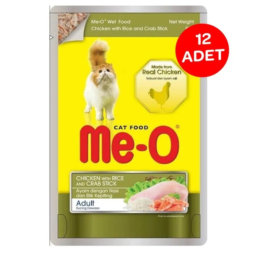 Lezzetli ve besleyici ME-O Tavuk Pirinç ve Yengeç Çubuklu Pouch Kedi Konservesi ile kedinizi mutlu edin!