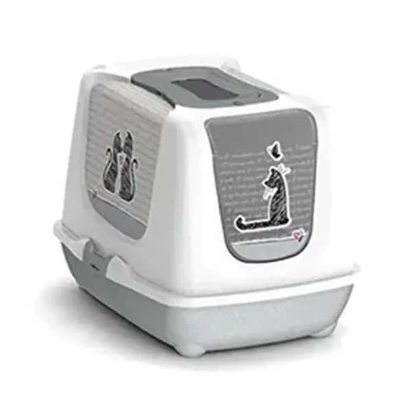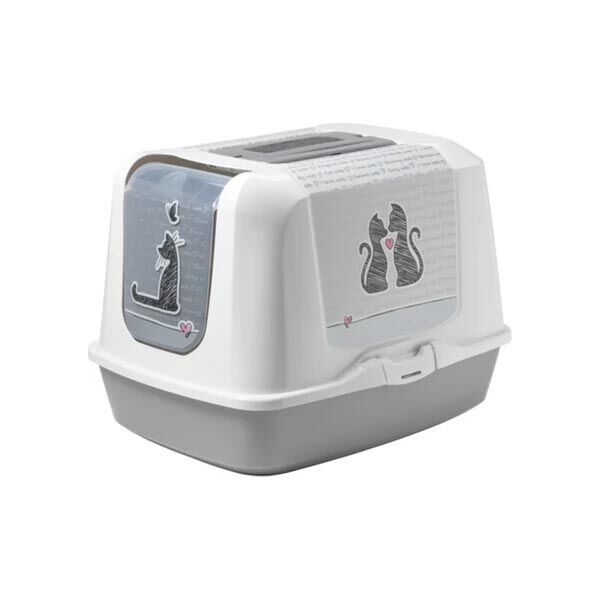 Moderna Cat Love Kapalı Kedi Tuvaleti, sevimli ve şık tasarımıyla evcil dostlarınızın tuvalet ihtiyaçlarını hijyenik bir şekilde karşılar. 57 cm uzunluğuyla geniş iç hacmi, kedinizin rahatça kullanabileceği bir alan sunar.