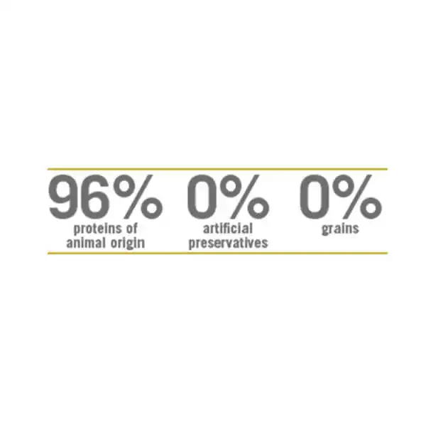 İçerik: bıldırcın (%32), kurutulmuş bıldırcın proteini (%30), bezelye nişastası, kurutulmuş bal kabağı (%5), kurutulmuş yumurta, tavuk yağı, ringa balığı, kurutulmuş ringa balığı proteini, balık yağı (ringa balığı), kurutulmuş havuç, yonca unu, inulin, fruktooligosakkarit, maya ekstratı (mannanooligosakkarit kaynağı), kurutulmuş nar (%0.5), kurutulmuş elma, kurutulmuş ıspanak, fisilyum kabuk ve tohumları (%0.3), kurutulmuş tatlı portakal, kurutulmuş yaban mersini, sodyum klorür, kurutulmuş bira mayası, zerdeçal (%0.2), aloe vera ekstratı.