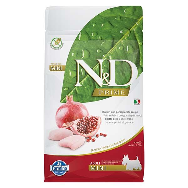 N&D Prime Tahılsız Tavuklu ve Narlı Küçük Irk Yetişkin Köpek Maması 800 gr