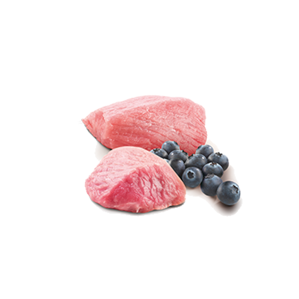 Kuzu gerdan ve omuz eti (%50), ringa balığı, haşlanmış tavuk yumurtası, kılçıksız buğday, yulaf, balık yağı, yaban mersini (%2), fruktooligosakkaritler, kondroitin sülfat, glukozamin, vitaminler, mineraller.