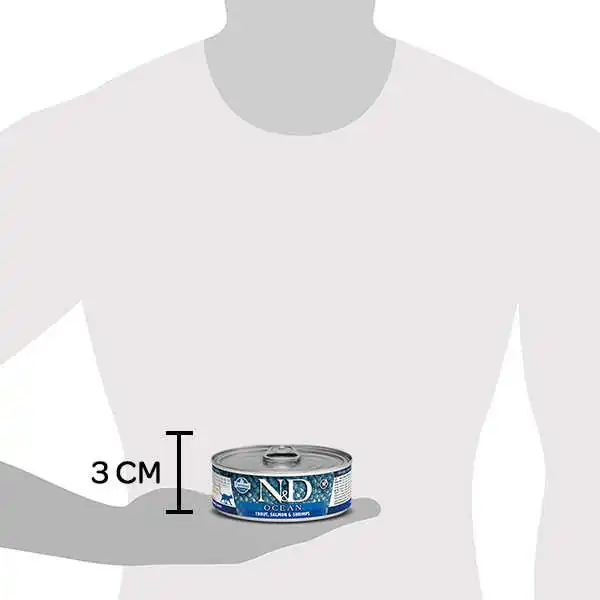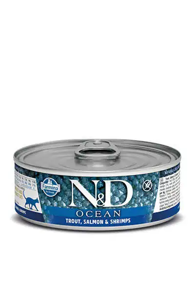 Alabalık (% 30), somon filetosu (% 20), morina filetosu, ringa balığı, karides (% 5), tatlı patates, balık yağı, fruktooligosakkaritler, kolin klorür, kondroitin sülfat, glukozamin, vitaminler, mineraller.
