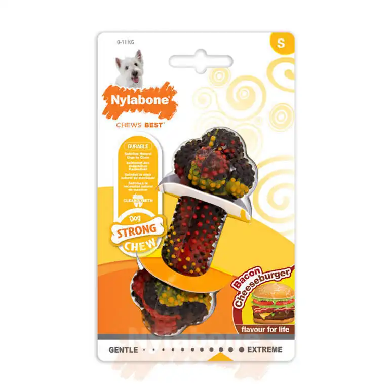 Nylabone Domuz Pastırması ve Cheeseburger Aromalı Köpek Çiğneme Kemiği S