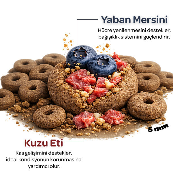 İşlenmiş kuzu proteini içeriği ve %31 toplam protein oranı ile kas gelişimini destekler, ideal kondisyonun korunmasına yardımcı olur.