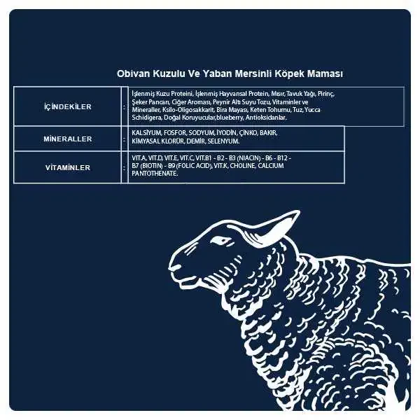 Obivan Kuzu Etli ve Yaban Mersinli Köpek Maması – 15 KG