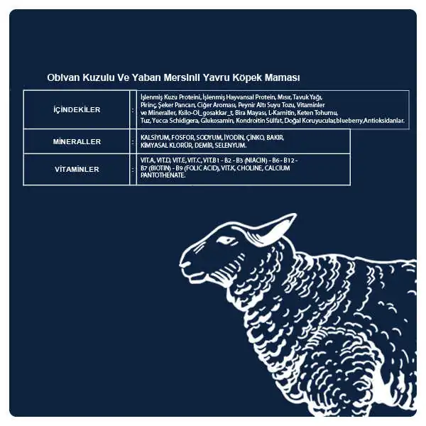 Obivan Kuzu Etli ve Yaban Mersinli Yavru Köpek Maması – 15 KG