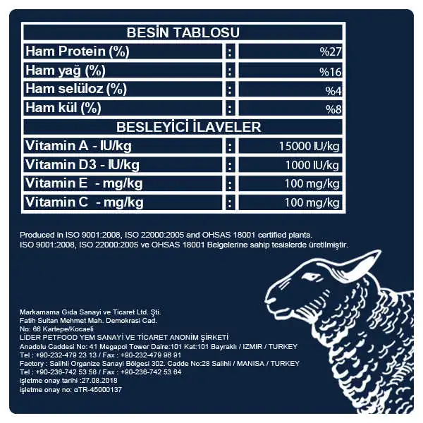 %17 kuzu + %27 hayvansal protein ile kas yapısı desteklenir, hızlı büyüme döneminde ihtiyaç duyulan yapı taşları sağlanır.