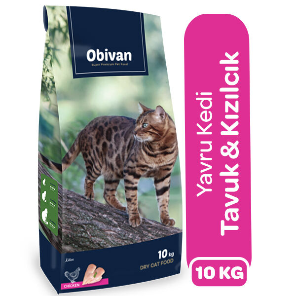 Obivan Kitten Tavuklu ve Kızılcıklı Yavru Kedi Maması 10 KG