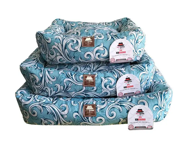 Petboss Açık Mavi Çiçek Desenli Kedi Köpek Yatağı 75X65X20