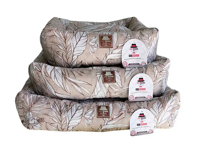 Petboss Krem Beyaz Çiçek Desenli Kedi Köpek Yatağı 66X56X20