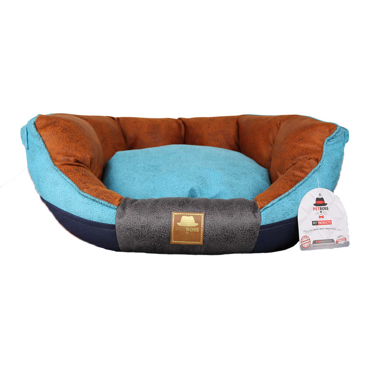 Petboss İstridye Kedi Köpek Yatağı Turkuaz-Mavi-Kahve 75X62X27