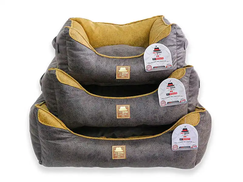 Petboss Kare Kedi Köpek Yatağı Gri Hardal 70X60X28