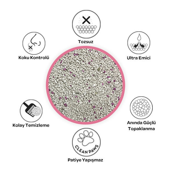 Petclay Pudra Kokulu İnce Renkli Taneli Kedi Kumu 5 LT