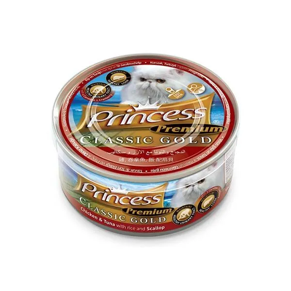 Princess Classic Gold Tavuklu Ton Balıklı Deniz Tarağı ve Kızılcıklı Yetişkin Kedi Konservesi 170 gr