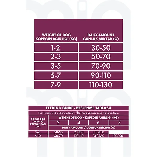 %33 protein ve %17 yağ içeriğiyle formüle edilen bu mama, yavru köpeklerin hızlı büyüme dönemindeki enerji ve besin gereksinimlerini karşılamaya yardımcı olur. Glukozamin ve kondroitin içeriği eklem sağlığının desteklenmesine katkı sağlar.
