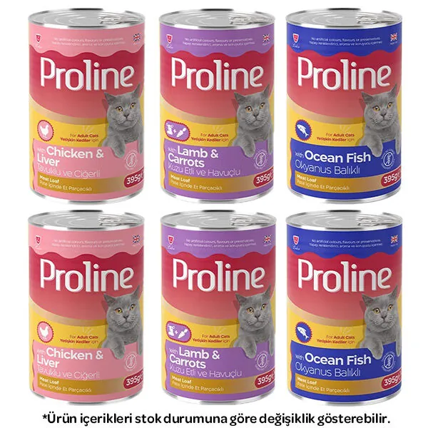 Proline Pate içinde Et Parçacıklı Karışık Kedi Yaş Maması 395 Gr X 6 Adet