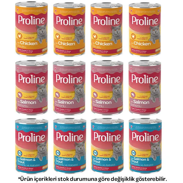 Proline Sos içinde Et Parçacıklı Karışık Kedi Yaş Maması 400 Gr X 12 Adet