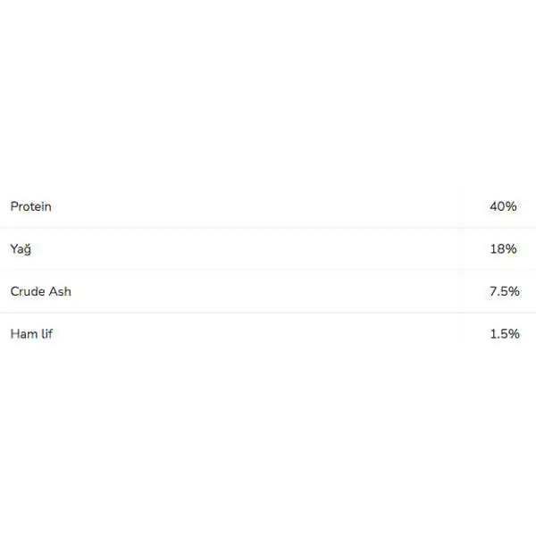 Mamanın İçeriği: Kuzu Eti %17,kurutulmuş tavuk proteini,bezelye protein konsantresi, pirinç , pirinç gluten unu, hayvansal yağ karışık tokoferoller ile korunmuş mısır,mısır nişastası,mısır gluten unu, kurutulmuş mısır,kurutulmuş hindibağı kökü, bütün yumurta kurutulmuş, sindirime destek için; pancar posası, balık yağı, maya,sakatat, potasyum klorür, kalsiyum karbonat, mineraller, kolin klorür, L-arginin, L-lizin, sodyum klorür, DL-metiyonin.